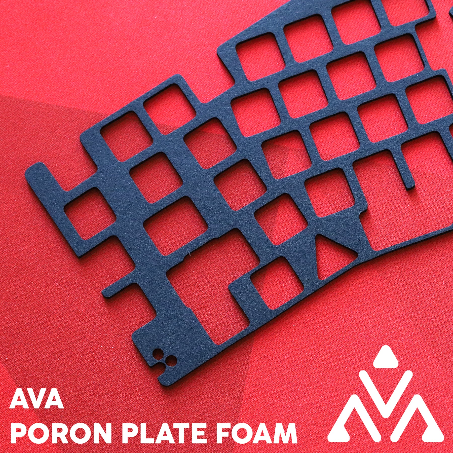 Plate foam for AVA. Made from soft poron foam (softer than the AVA EVA foam) designed to be used with the Slow-recoil AVA Poron Foam Gasket sold separately. This foam is installed between the switchplate and the PCB prior to switch installation.