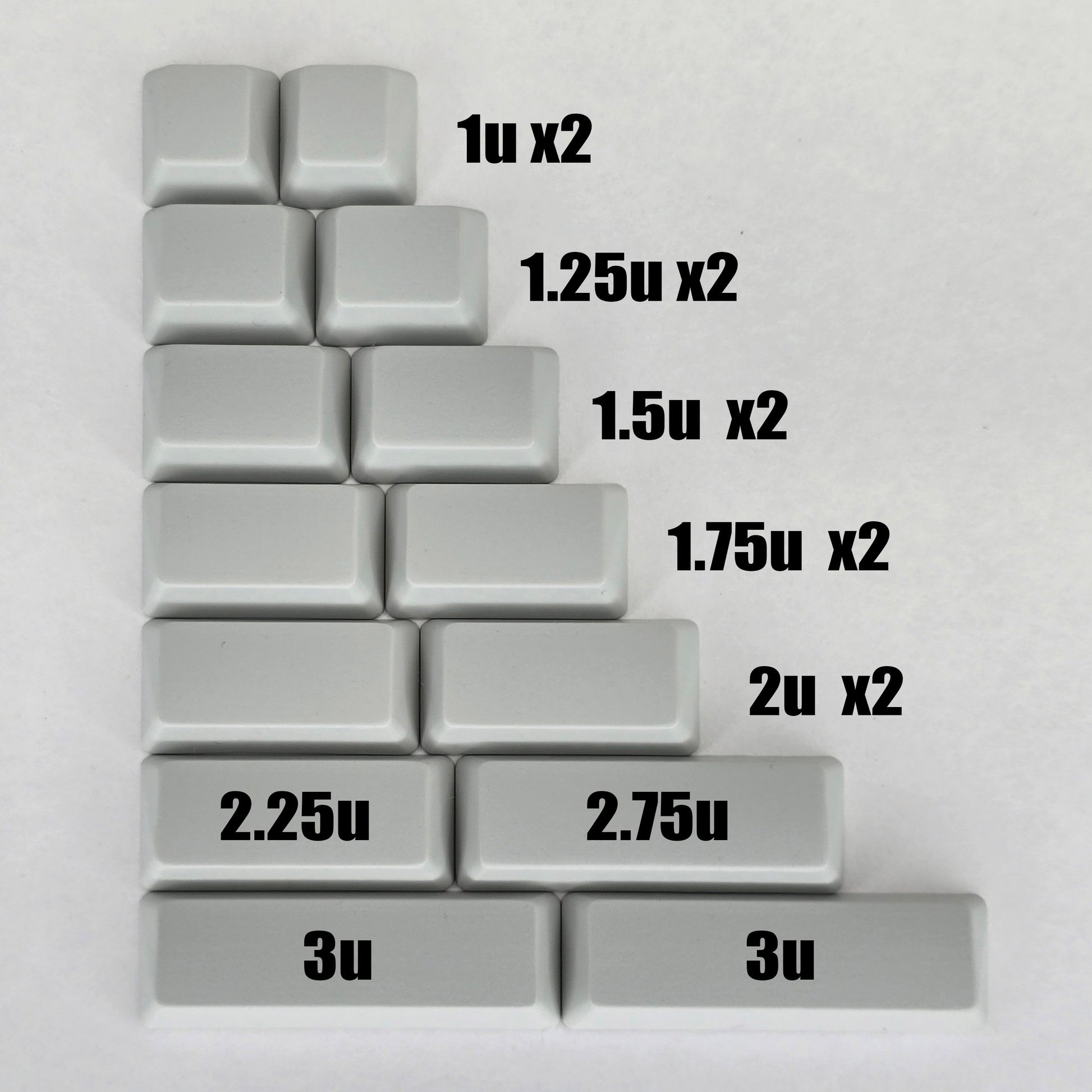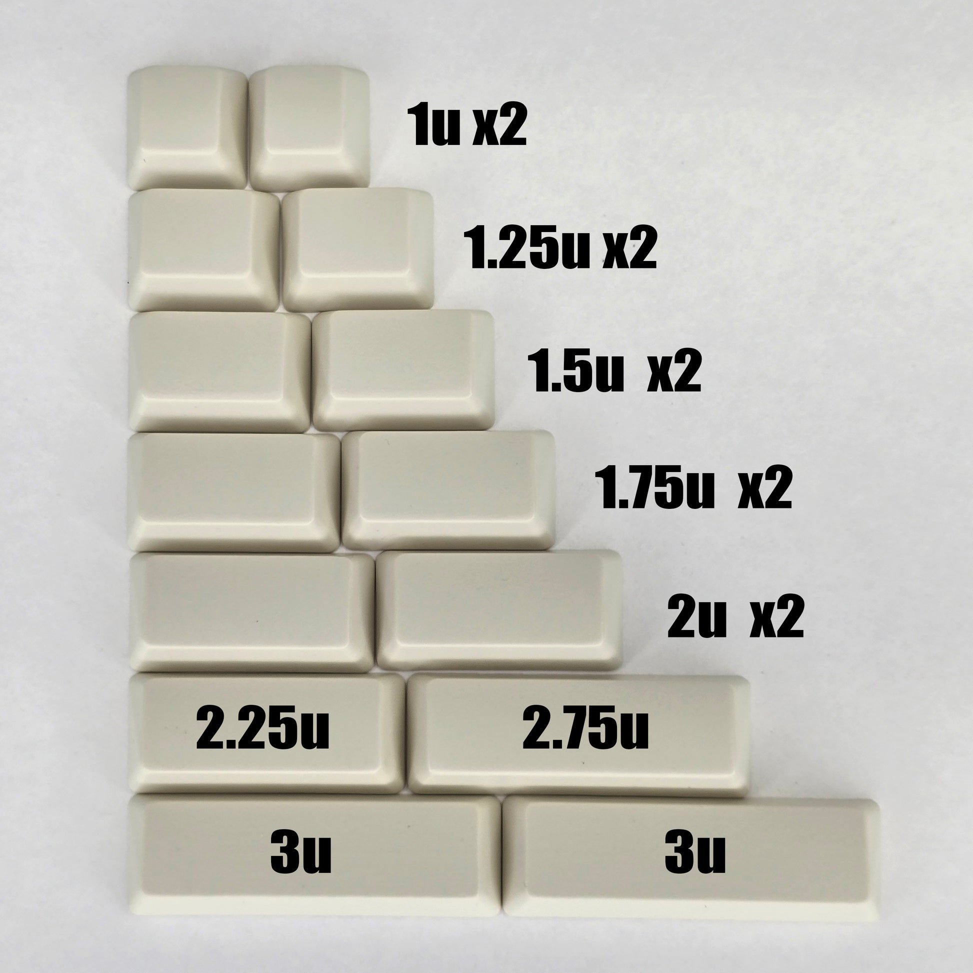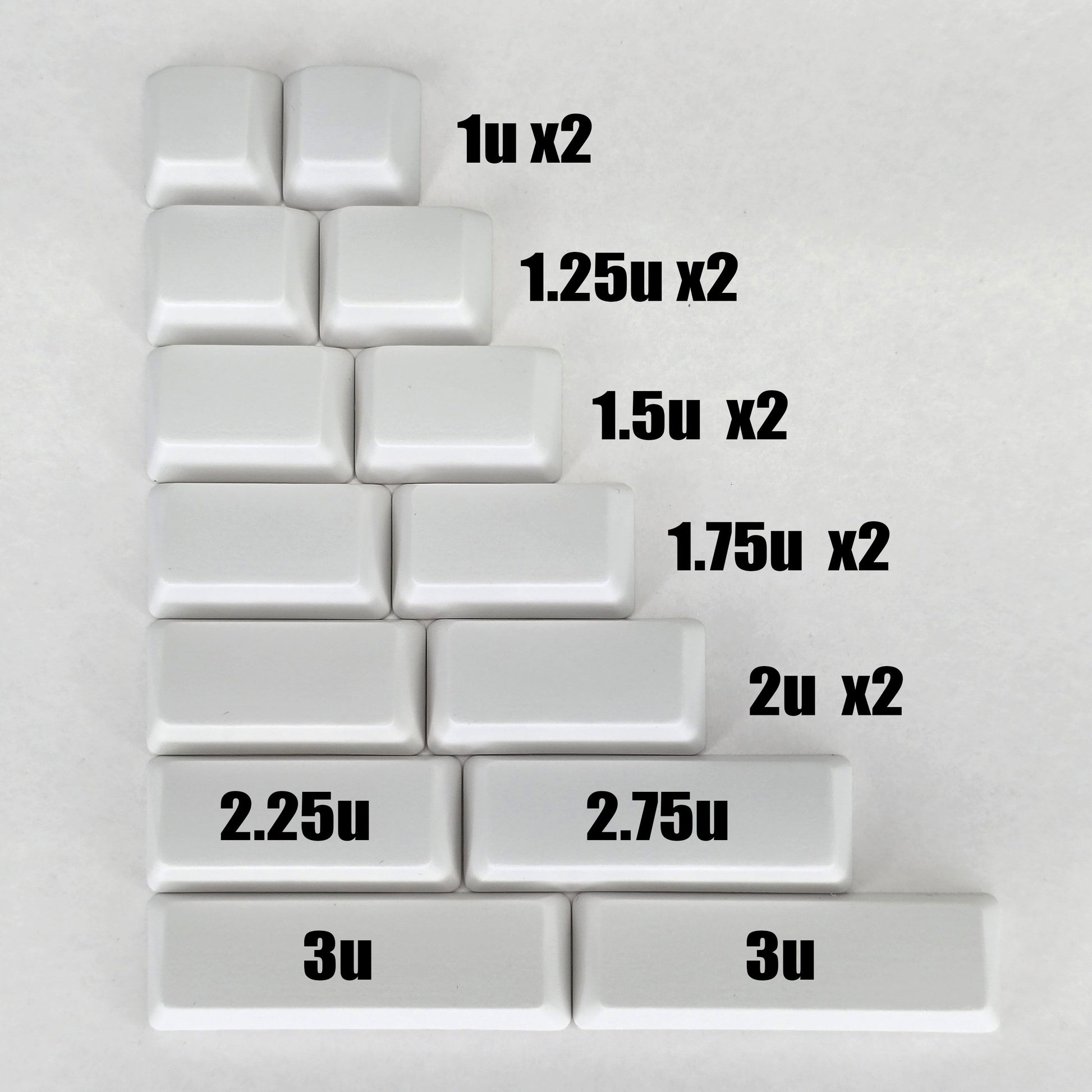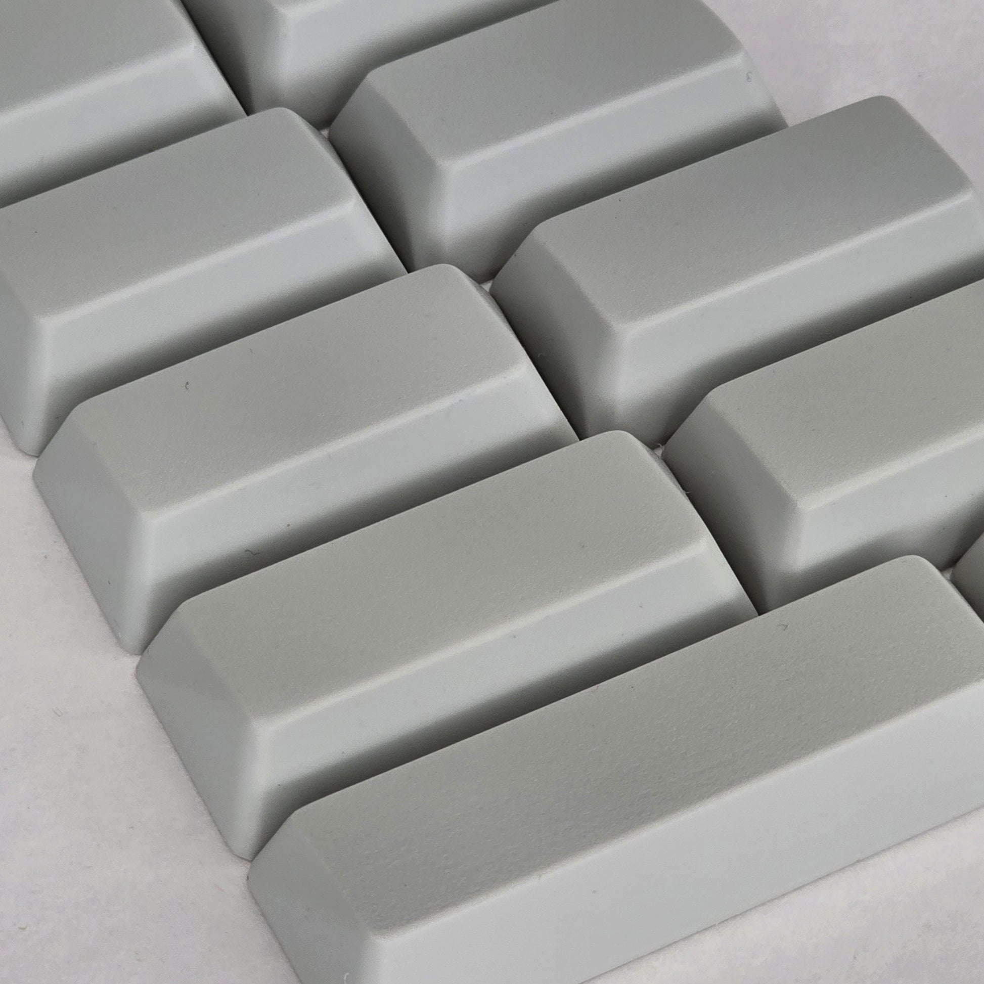 Featuring spacebar-sculpted (convex) keycaps of a variety of key sizes.