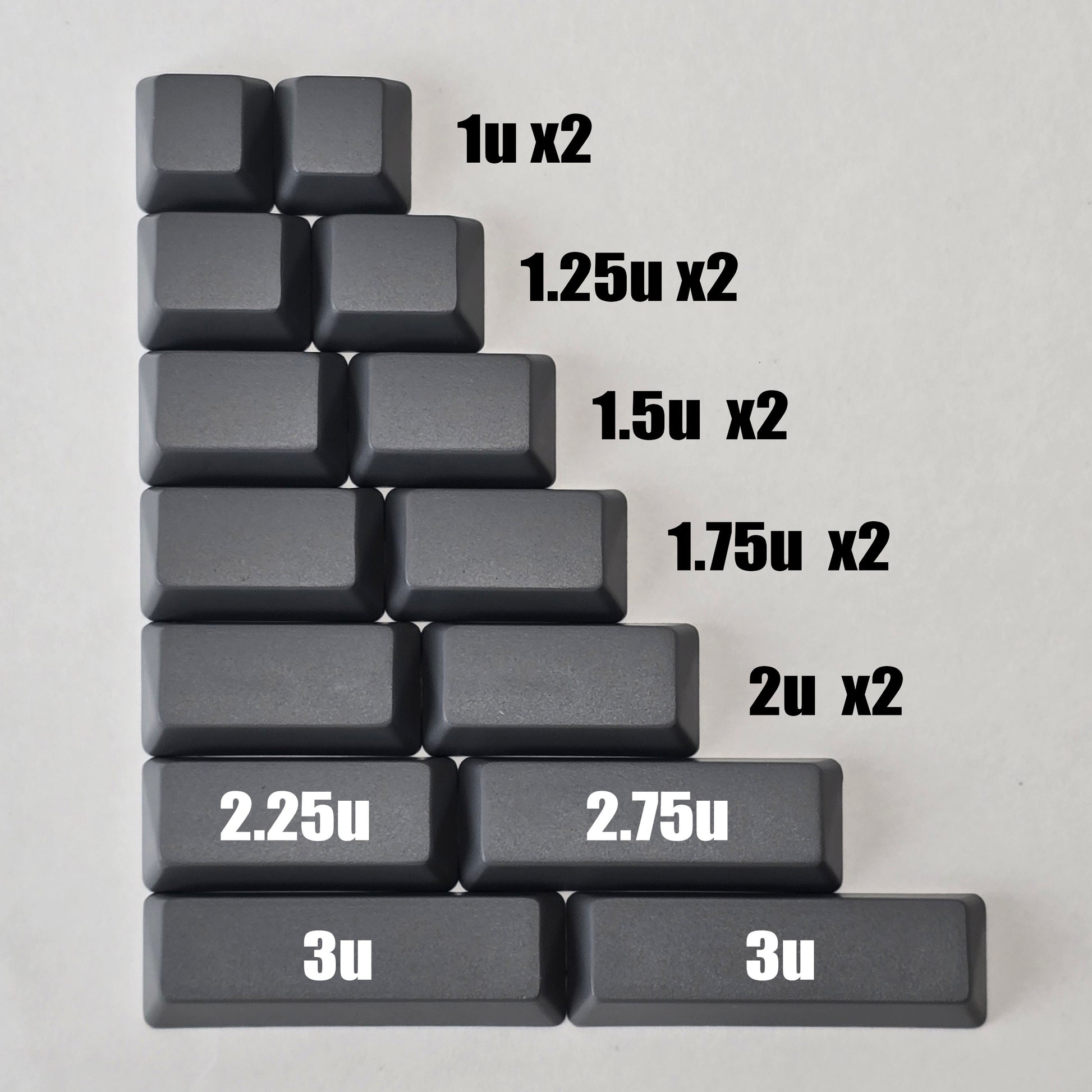 Featuring spacebar-sculpted (convex) keycaps of a variety of key sizes.