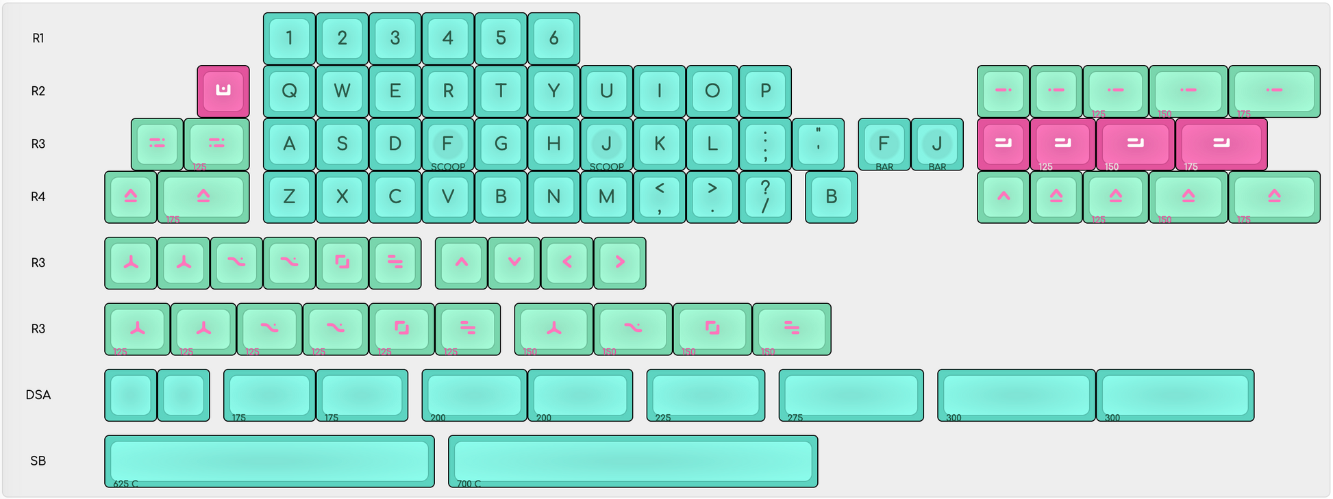 - Sculpted DSS profile (1-2-3-4-3) with concave DSA minibars (3u and under)
