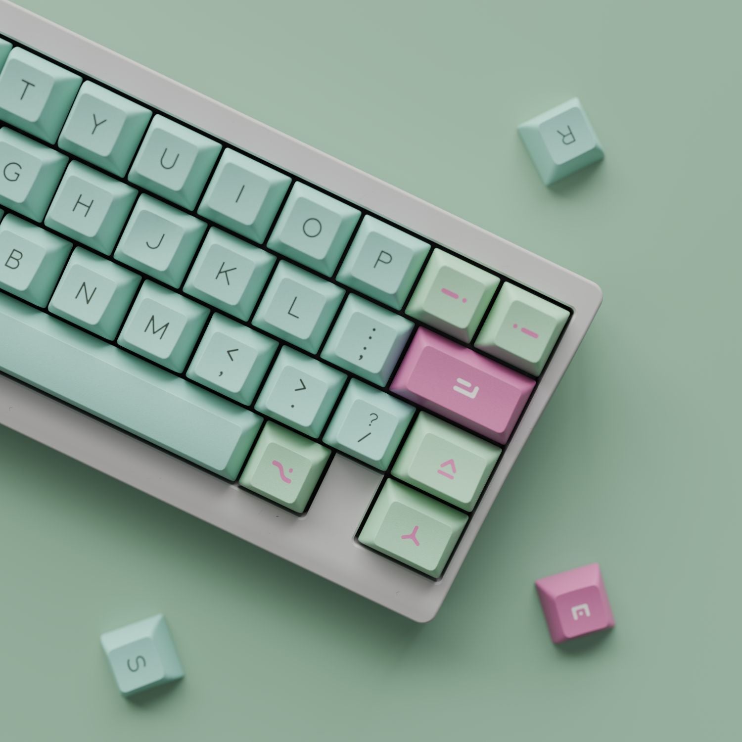 This kit is being sold alongside Pseudoku Asymplex resin artisan keycaps and Pseudoku Asymplex solid-color resin keycaps