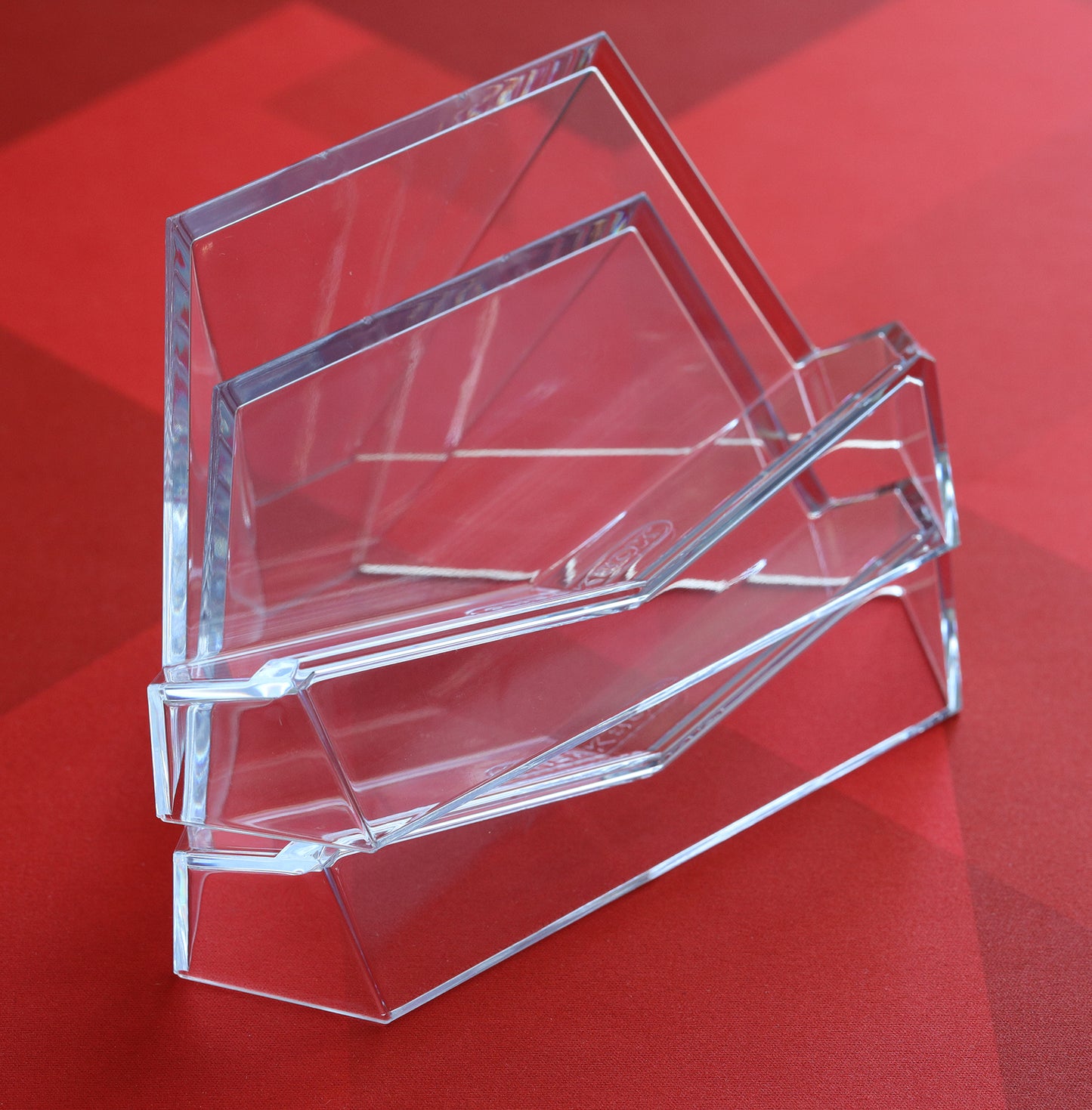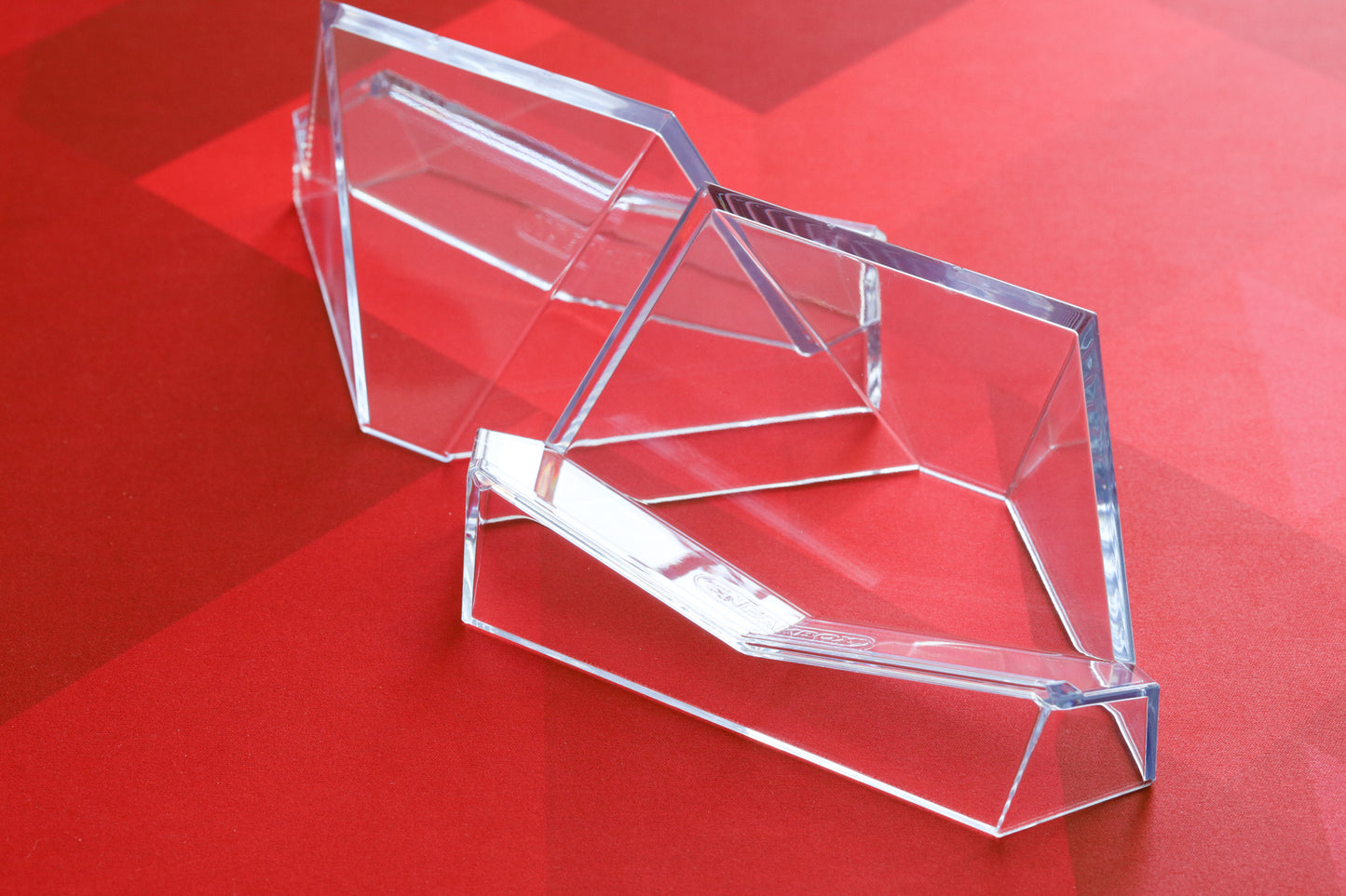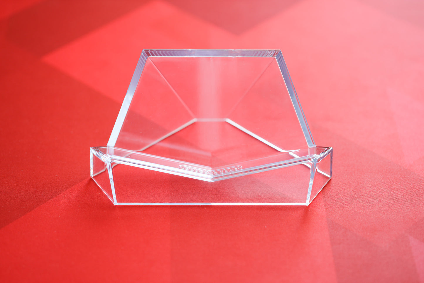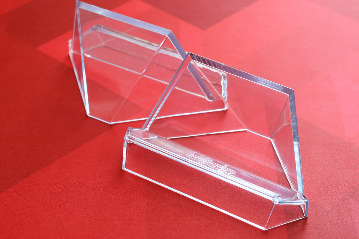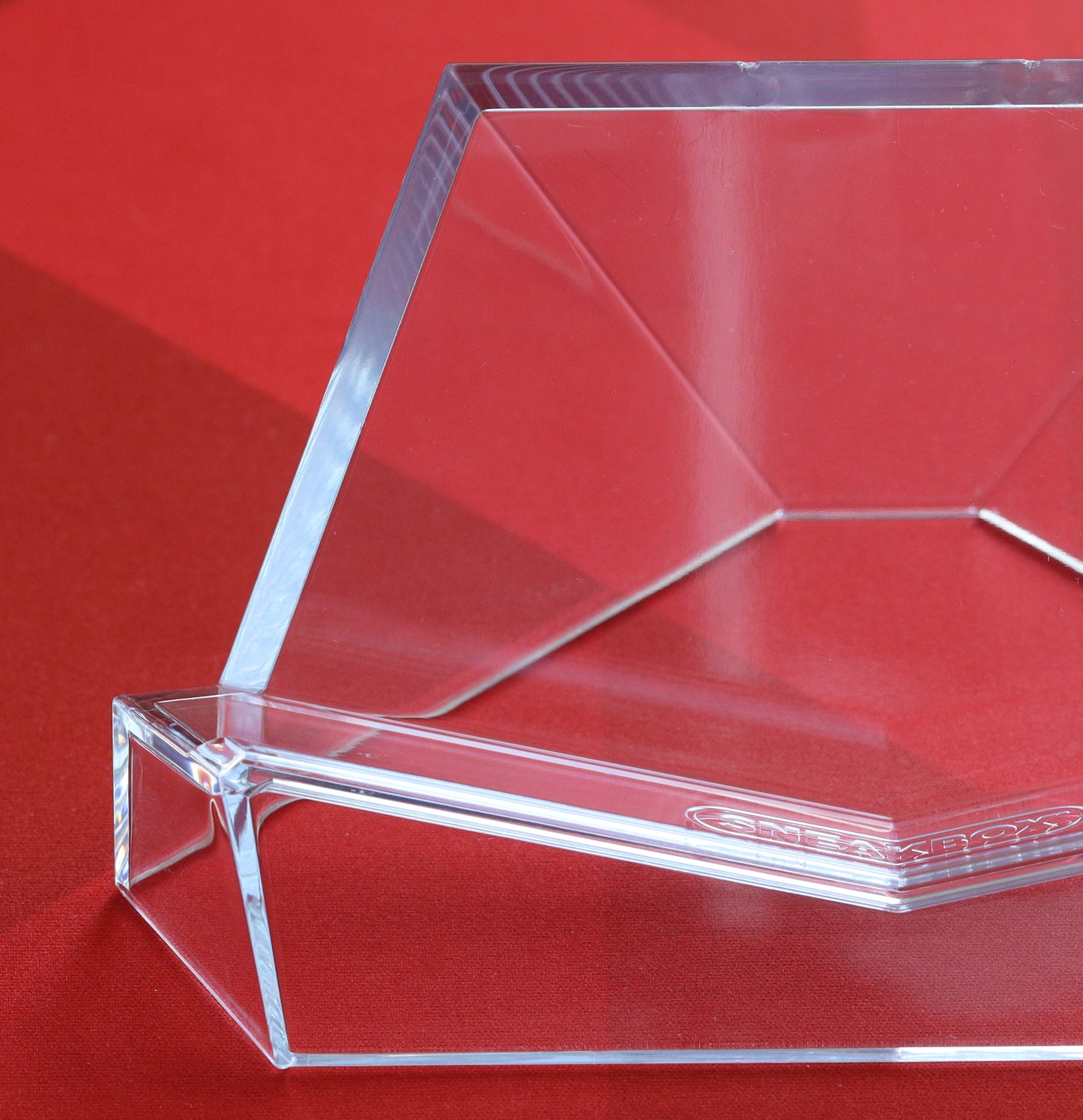 Developed by Sneakbox. Stable yet minimally obtrusive. Single-piece injection-molded clear durable polycarbonate (tougher than acrylic easels). Anti-wobble design. Stackable when not in use. Small front lip to prevent keyboard sliding.