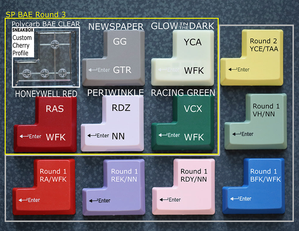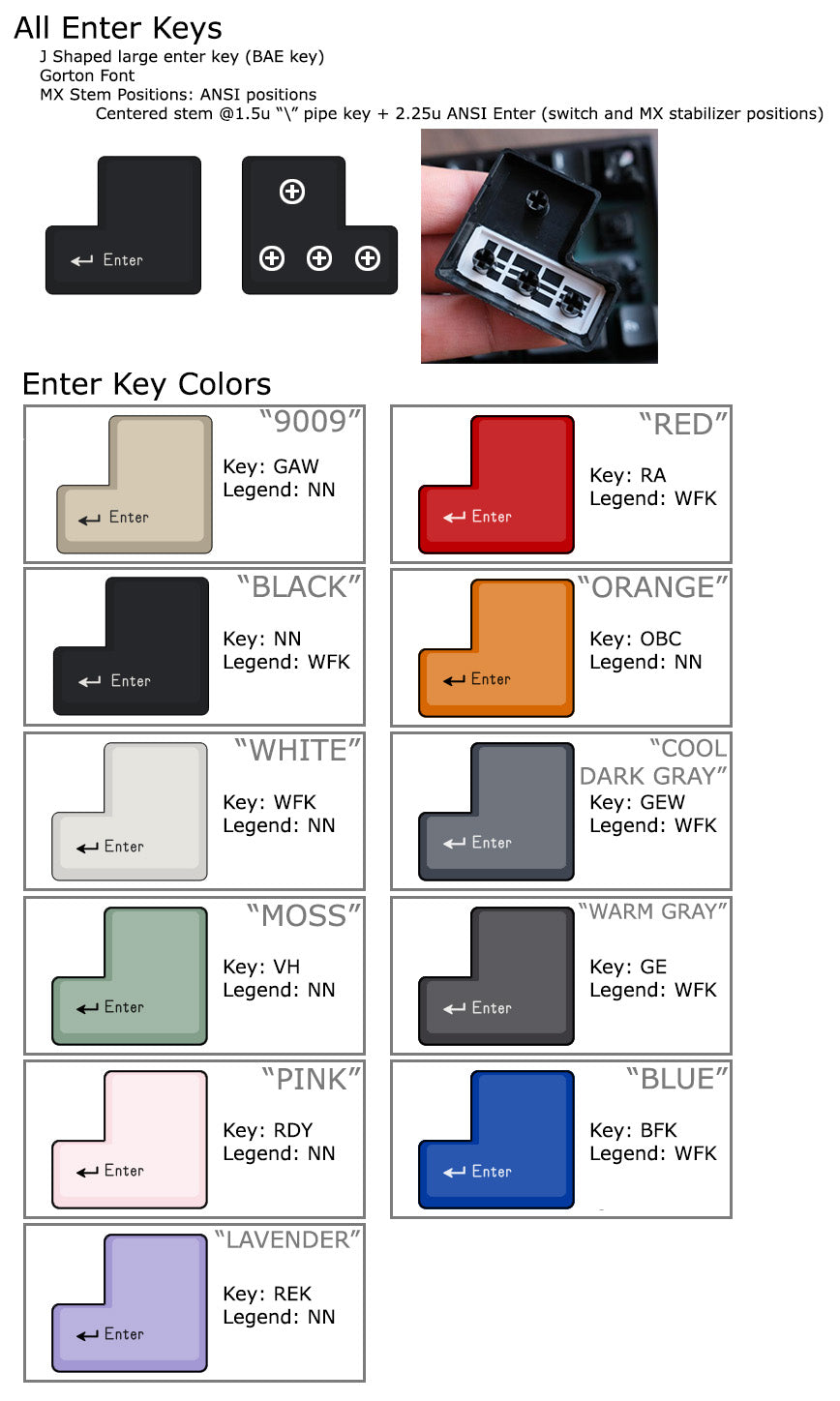 This project started with Carter's interest in launching a Signature Plastics 9009 Extensions pack with stepped Mods as well as a 10u spacebar and BAE key. The stepped mods didn't make the necessary MOQ, but the project transitioned to a pre-order and I added additional BAE colors for upcoming projects.