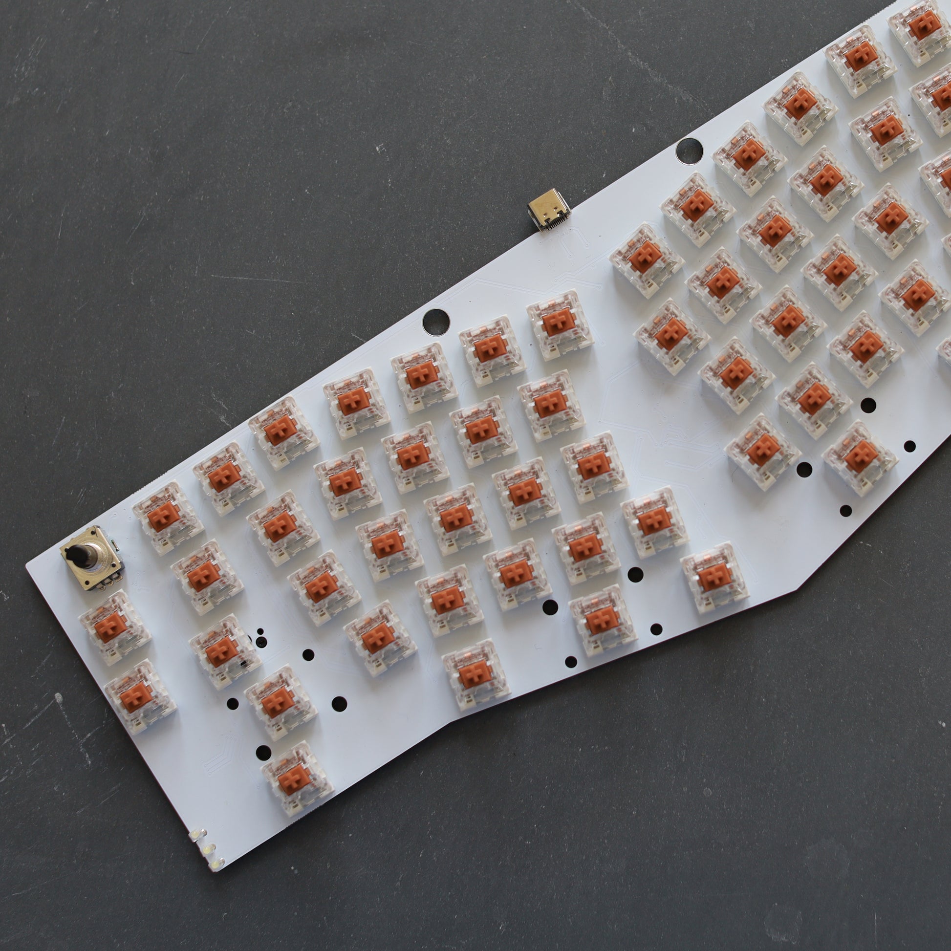 - Switch footprints are lined with metal plating for salvage use in case of Hotswap failure-- even if socket breaks off, the switch can be soldered into position.