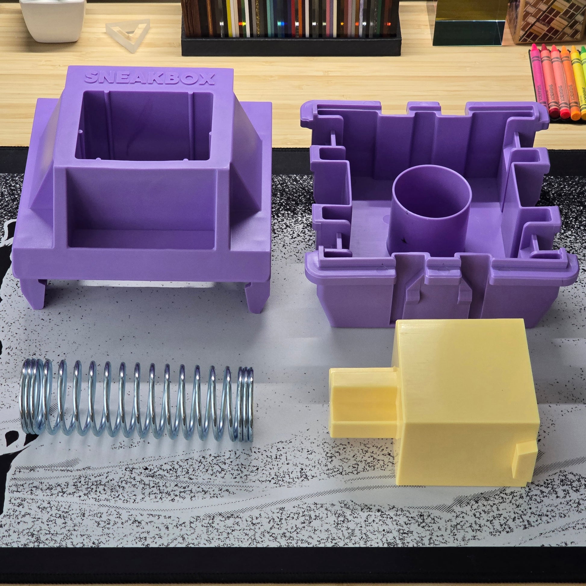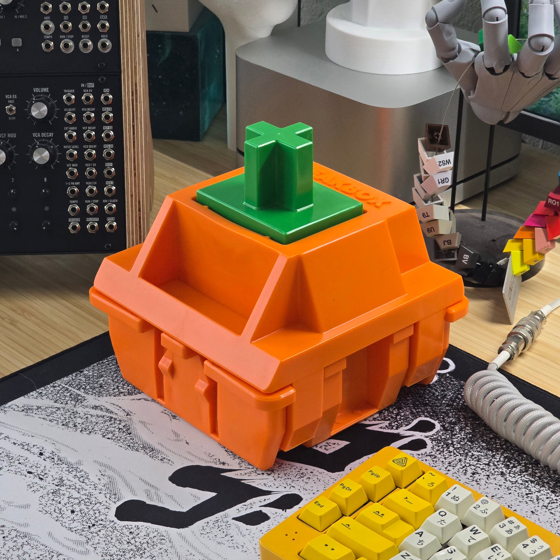 The Titan switch is a gigantic interactive 12:1 scale monument celebrating our keyboard hobby. Born from the photo booth for TexMechs Keyboard Roundup '24, this 8-inch wide fully actuating injection-molded switch comes in 4 pieces (top, bottom, stem, and spring). Sports a 7 lb. compression force. Designed to be a showpiece for your space, and made for no particular functional reason at all.